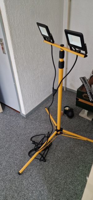 Deze bouwlamp set bevat twee functionele LED schijnwerpers met 2250 Lumen lichtopbrengst per lamp in een Helder Witte lichtkleur, een bouwlamp statief en een stekkerkabel. Voor zowel particulier als professioneel gebruik.